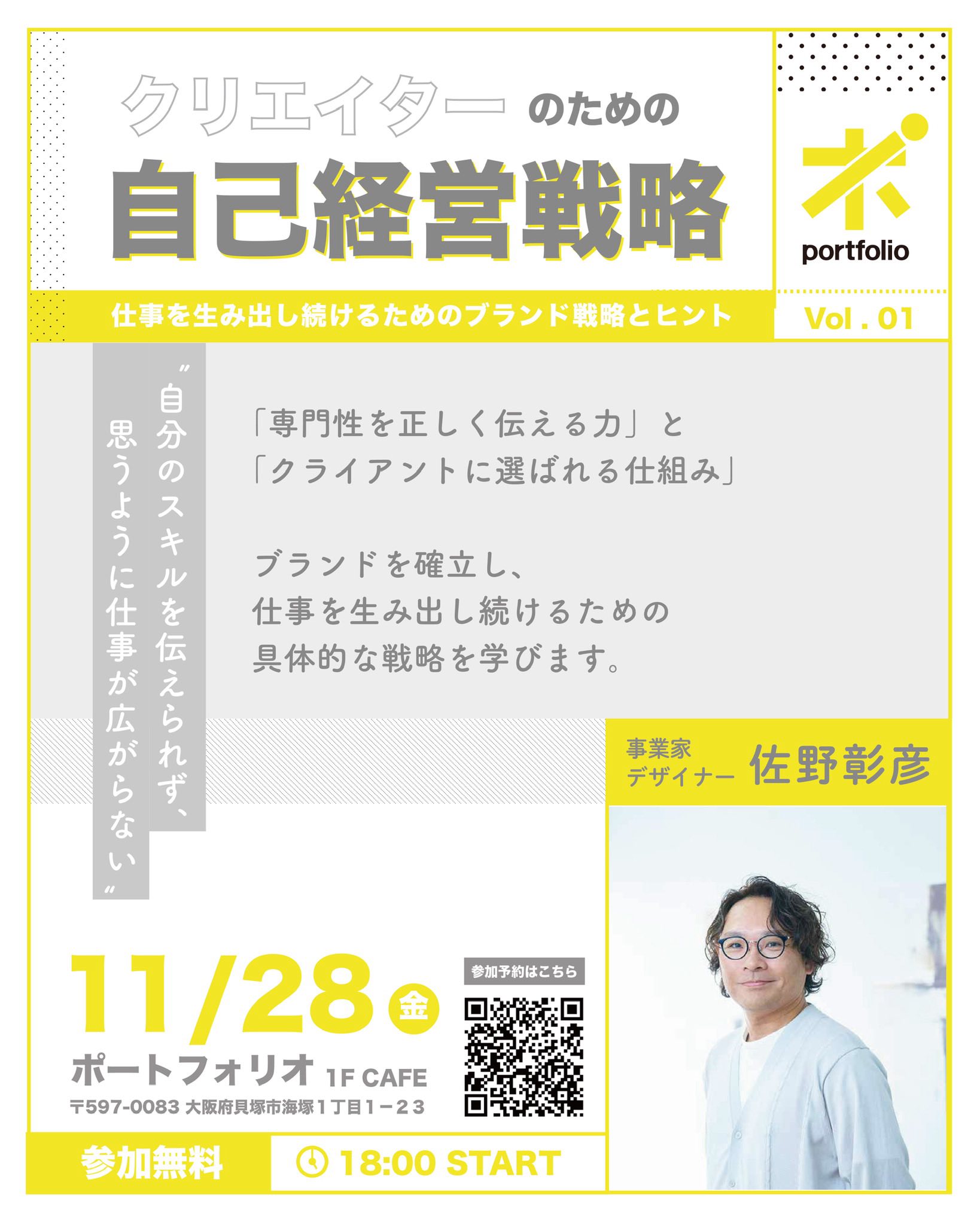 【講演情報】「クリエイターのための自己経営戦略」大阪貝塚市にて佐野彰彦が登壇します